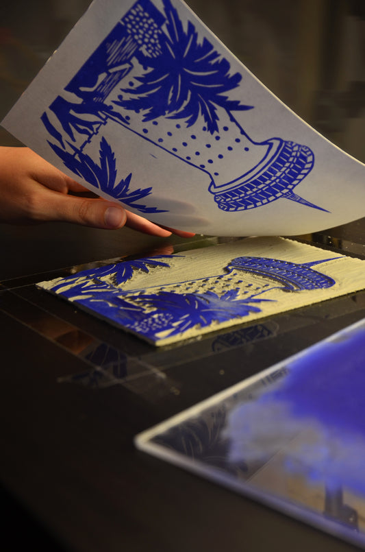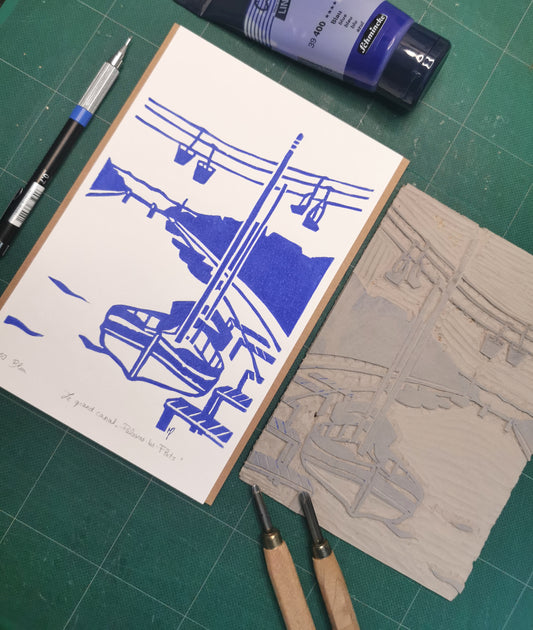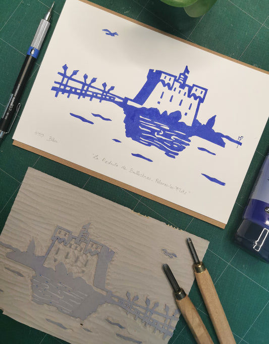 Découvrez mes linogravures réalisées dans mon atelier avec impression à la presse manuelle.