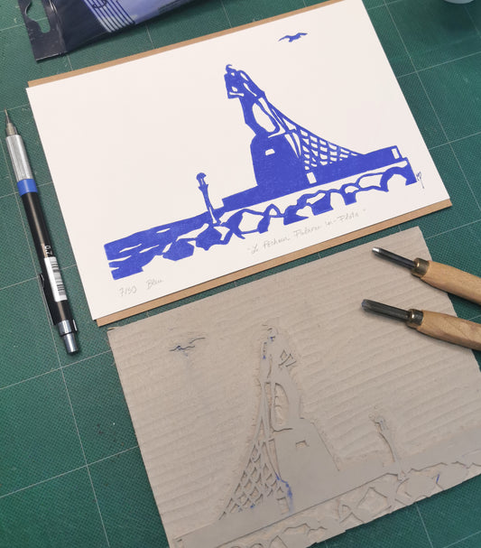 Linogravure - " Le phare - Palavas-les-Flots "